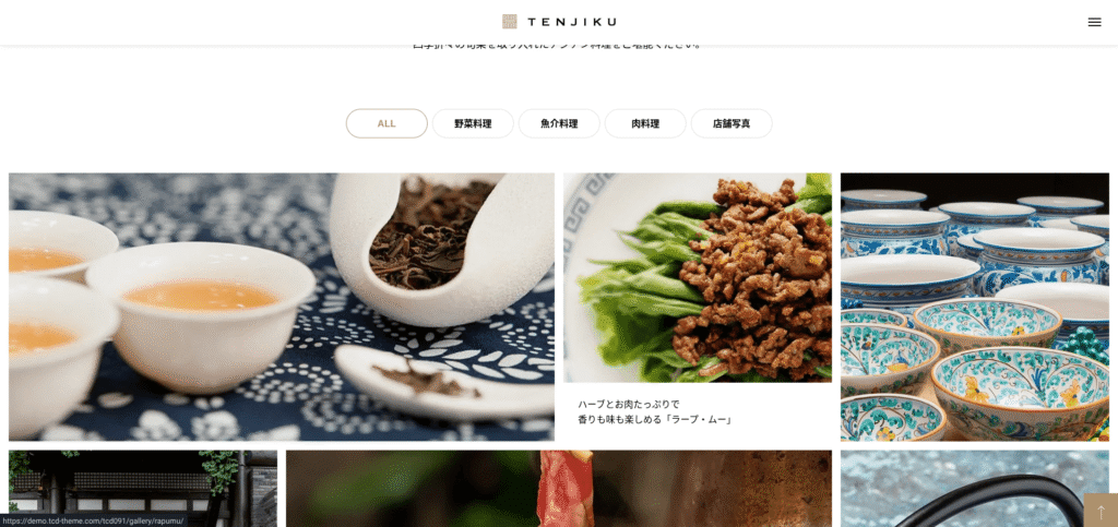 「TENJIKU」のデモサイトは、プロが撮影したような美しい写真が印象的ですよね。