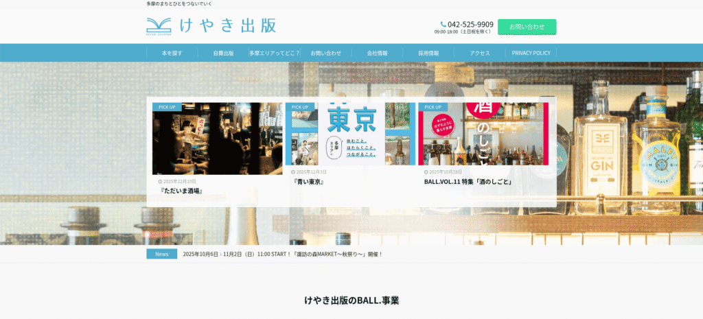 • 白ベースの余白デザイン: 文字情報を詰め込まず、余白をたっぷり取ることで、「本を作る会社」らしい知的なブランドイメージを作っています。