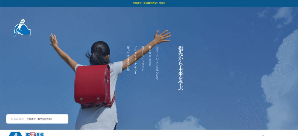 トップページに「コース紹介」や「教室の様子」を整理して並べることで、入塾前の疑問をスムーズに解決する動線になっています。
