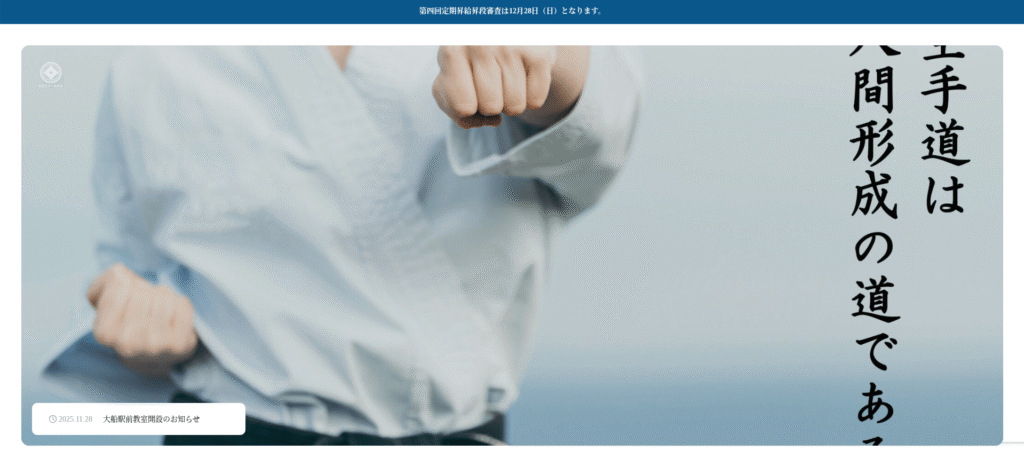 - ギャラリー機能: 稽古風景を高画質な写真ギャラリーで見せることで、道場の清潔さや明るさを視覚的に証明しています。